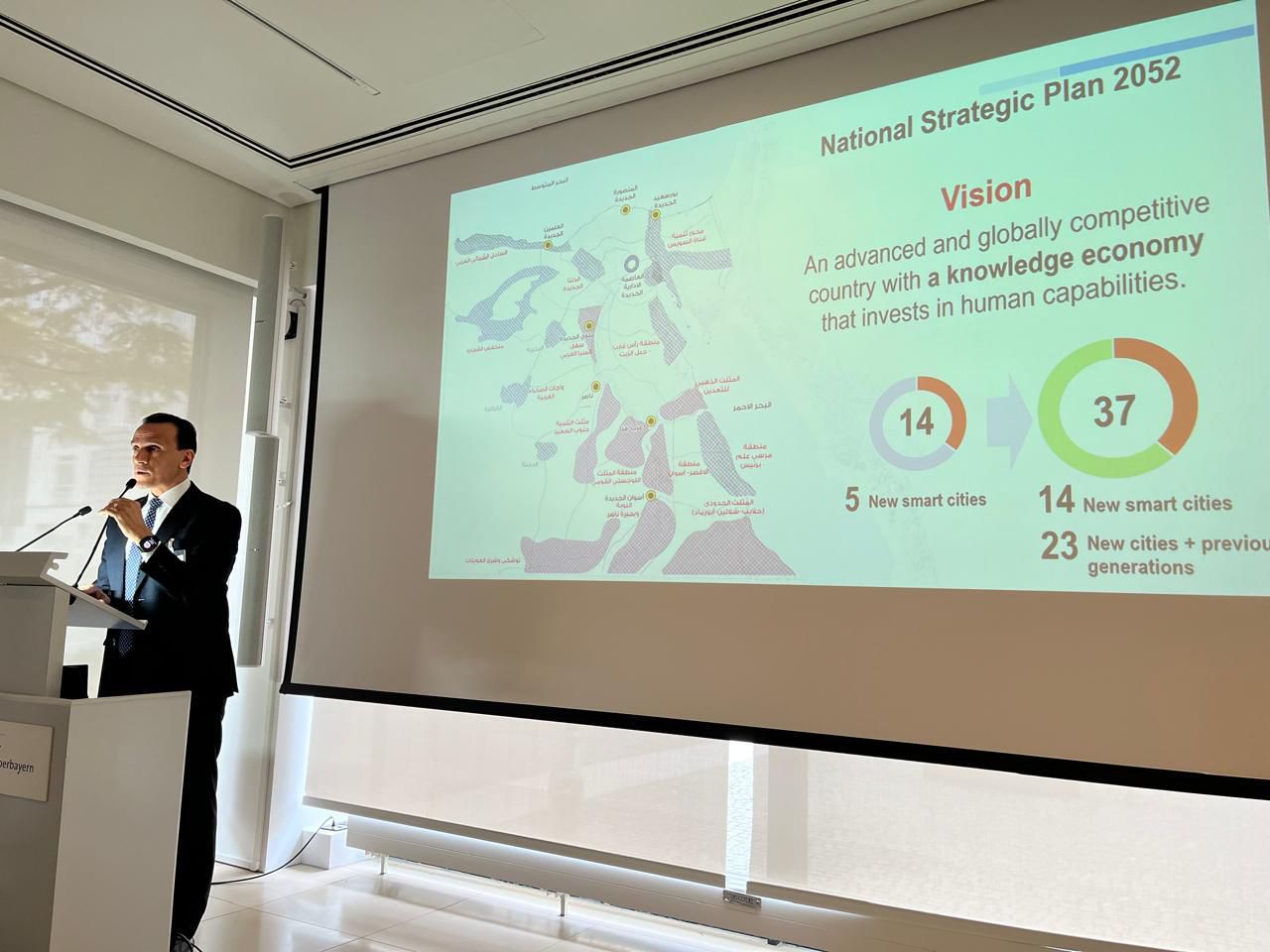 وخلال الجلسة استعرض الدكتور عبد الخالق إبراهيم، التجربة الوطنية في مجال الابتكار الحضري والتخطيط العمراني المستدام، موضحًا كيف تُسهم التحوّلات الرقمية وأطر التخطيط المتكاملة في دفع الأجندة الحضرية الجديدة لمصر، كما تم عرض مجموعة من التجارب المصرية في تنفيذ المشروعات الذكية وخاصة في مدينة العاصمة الإدارية والعلمين الجديدة وعدد من التجارب المحلية الأخرى بالمدن القائمة مثل السادس من أكتوبر والشيخ زايد والخاصة ببعض المقترحات التكنولوجية لتحسين جودة الحياة والبحث عن امكانية تنفيذ وتمويل هذه المشروعات.