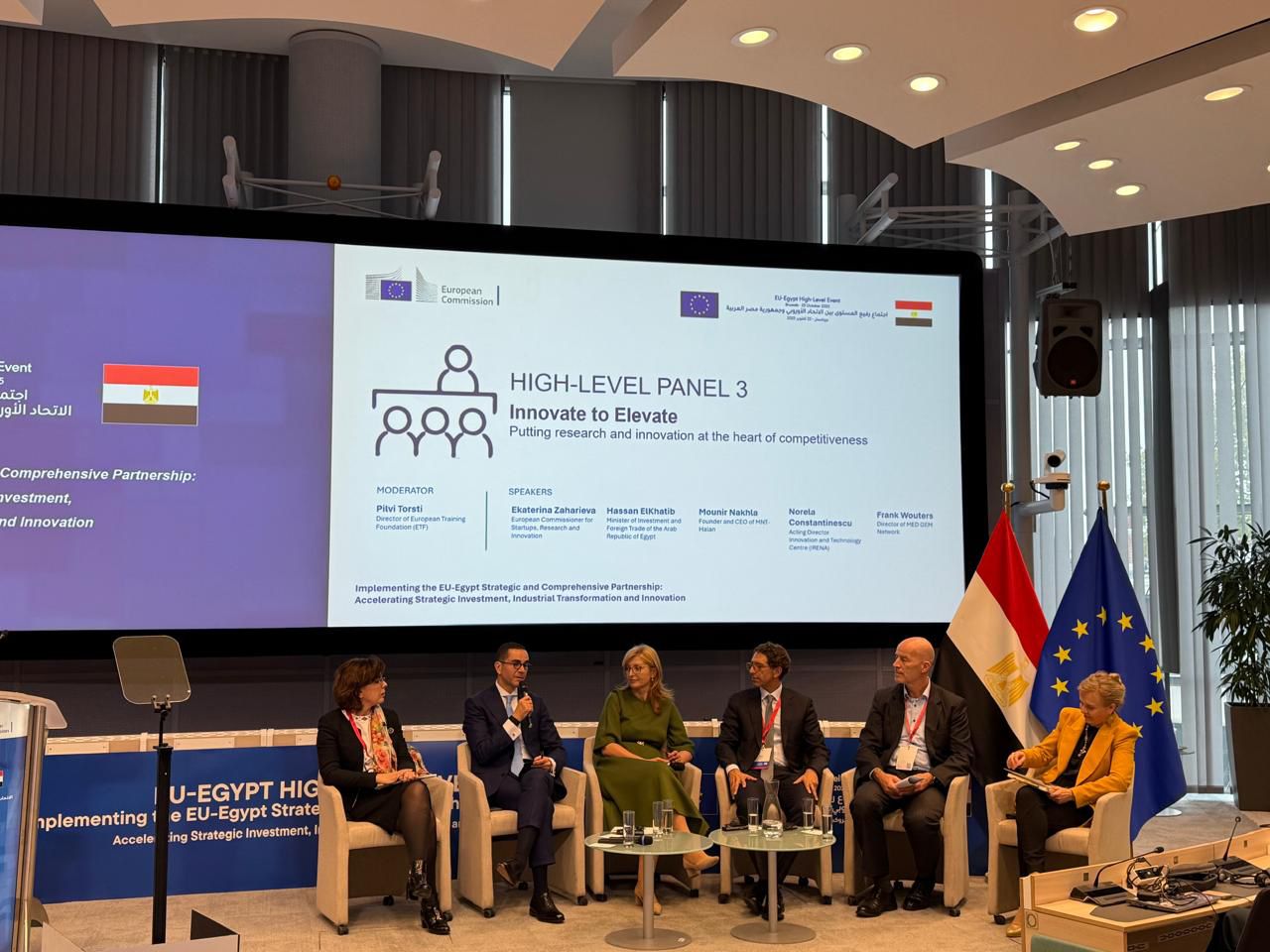 في إطار فعاليات القمة المصرية الأوروبية ببروكسل حول تعزيز القدرة التنافسية والابتكار الصناعي، شارك المهندس حسن الخطيب، وزير الاستثمار والتجارة الخارجية في الجلسة الرفيعة المستوى بعنوان “ابتكر لترتقي: وضع البحث والابتكار في قلب القدرة التنافسية”، وأدارت الجلسة السيدة بيلفي تورستي، مديرة المؤسسة الأوروبية للتدريب، وبحضور السيدة إيكاترينا زاهاريفا، المفوضة الأوروبية لشؤون الشركات الناشئة والبحث والابتكار، و منير نخلة، مؤسس و الرئيس التنفيذي MNT-Halan، و السيدة نورِيلا كونستانتينسكو، القائم بأعمال مدير مركز الابتكار والتكنولوجيا بالوكالة الدولية للطاقة المتجددة (IRENA)، وفرانك ووترز، مدير شبكة EU MED-GEM الممولة من الاتحاد الأوروبي