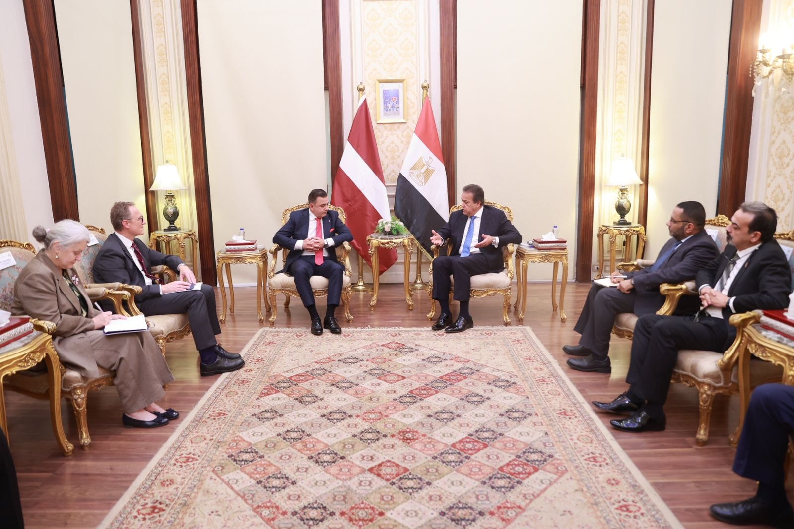 وأشار إلى اتفاق الوزيرين على وضع آليات لتعزيز التعاون مع منظمة الصحة العالمية واليونيسيف، بهدف دعم الجهود المصرية في تقديم المساعدات والإغاثات الإنسانية للدول التي تشهد أزمات وصراعات حالياً، كما تناول الاجتماع تعزيز التعاون في رقمنة خدمات الرعاية الصحية لتحسين الكفاءة وتكامل البيانات، وتقديم خدمات طبية عالية الجودة للمواطنين، واتفق الطرفان على تبادل الدعم في ملف الأدوية وتسجيلها لدى لاتفيا، مستفيدين من الكفاءة المصرية العالية في تصنيع الأدوية.