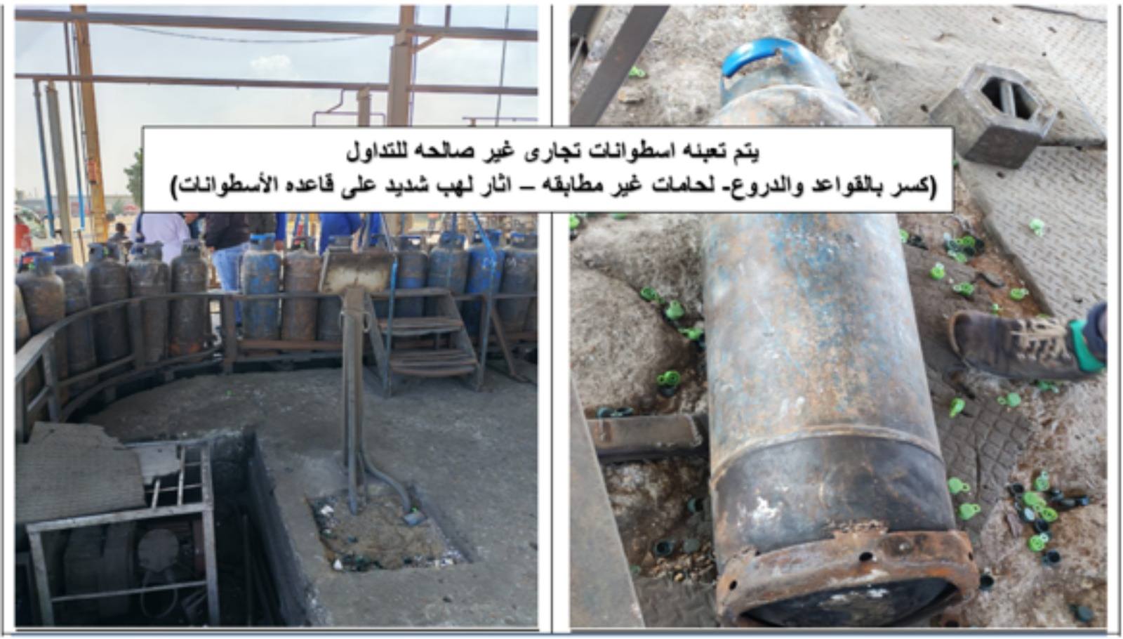 تم التفاعل مع الشكوى المقدمة ضد أحد مصانع تعبئة أسطوانات البوتاجاز  بالجيزة وإجراء مراجعة شاملة على المصنع، وتبين وجود نقص في أوزان غالبية الأسطوانات المعدة للبيع للجمهور عن الأوزان الرسمية ، وقصور في إجراءات الفرز واستبعاد الأسطوانات التالفة غير الصالحة للتداول قبل التعبئة، والسماح لسيارات غير صالحة فنياً ومتهالكة بالدخول وتحميل الأسطوانات لتوزيعها على المخازن بما يمثل خطورة شديدة، كما تبين أن منظومة الإطفاء والإنذار بحاجة للصيانة، وتم اتخاذ الإجراءات اللازمة للإغلاق المؤقت للمصنع حتي اصلاح أوضاعه مع تحويل حصته الي مصانع شركة بتروجاس حفاظاً علي انتظام الإنتاج ، وتحرير محضر بالمخالفات.