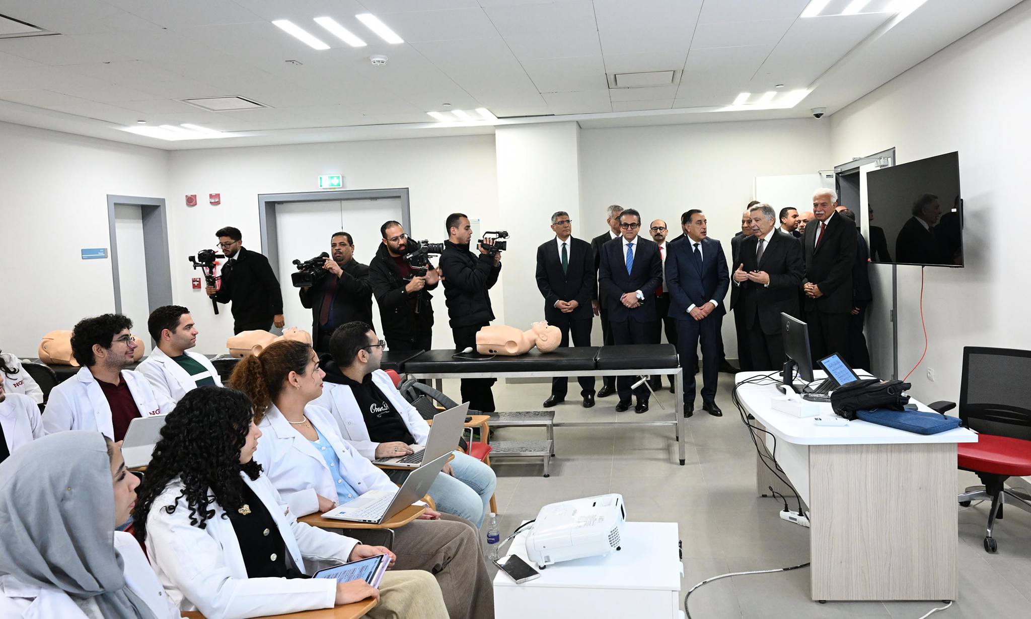 تفقد الدكتور مصطفى مدبولي، رئيس مجلس الوزراء، عددا من أقسام المستشفى الجامعي بجامعة الجيزة الجديدة، عقب افتتاحه صباح اليوم، بحضور المهندس/ إبراهيم محلب، رئيس مجلس الوزراء الأسبق، رئيس مجلس أمناء جامعة الجيزة الجديدة، والدكتور/ أحمد نظيف، رئيس مجلس الوزراء الأسبق، رئيس المجلس الاستشاري لجامعة الجيزة الجديدة، والسيد/ أحمد أبو الغيط، الأمين العام لجامعة الدول العربية، عضو مجلس الأمناء، والدكتور خالد عبد الغفار، نائب رئيس مجلس الوزراء للتنمية البشرية، وزير الصحة والسكان، والدكتور/ محمد أيمن عاشور، وزير التعليم العالي والبحث العلميّ، رئيس المجلس الأعلى للمستشفيات الجامعية، والمهندس/ عادل النجار، محافظ الجيزة، والدكتور/ أحمد سامح فريد، وزير الصحة والسكان الأسبق، رئيس جامعة الجيزة الجديدة، والدكتور/ محمد عوض تاج الدين، مستشار السيد رئيس الجمهورية لشئون الصحة والوقاية، وعدد من رؤساء الجامعات ووزراء الصحة السابقين، وقيادات جامعة الجيزة الجديدة وكلية الطب بها.