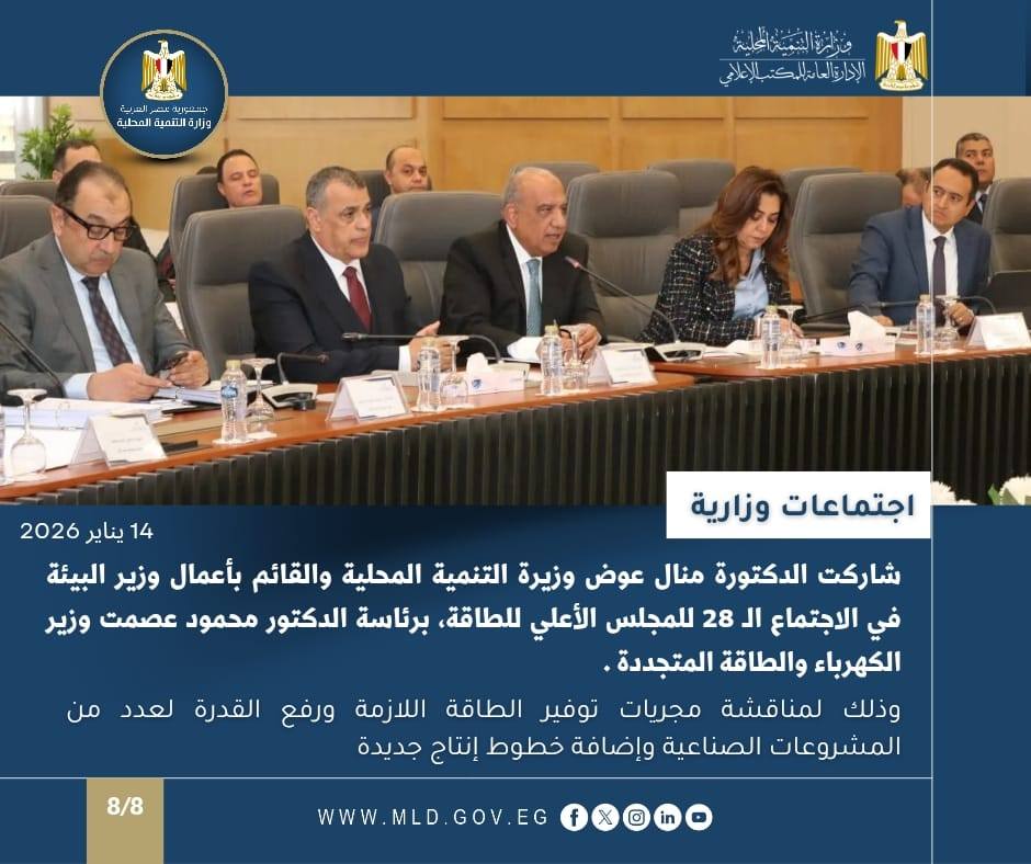 شاركت الدكتورة منال عوض وزيرة التنمية المحلية والقائم بأعمال وزير البيئة، في الاجتماع رقم 28 للمجلس الأعلى للطاقة بديوان عام وزارة الكهرباء والطاقة المتجددة بالعاصمة الجديدة, برئاسة الدكتور محمود عصمت وزير الكهرباء والطاقة المتجددة، وتم خلال الاجتماع مناقشة آليات وضوابط توفير المستلزمات الأساسية والطاقة اللازمة لعدد من الأنشطة الصناعية كثيفة الاستهلاك للطاقة، ورفع القدرة لعدد من المشروعات الصناعية وإضافة خطوط إنتاج جديدة.