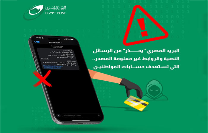 ويدعو البريد المصري جميع المواطنين إلى توخي الحذر وعدم الانسياق وراء هذه المحاولات الاحتيالية، مع التأكيد على استمرار الهيئة في تطوير أنظمتها الأمنية لحماية عملائها، واتخاذ كافة التدابير القانونية اللازمة حيال القائمين على هذه المحاولات الاحتيالية لقيامهم بالنصب والاحتيال على المواطنين واختراق حساباتهم المالية وانتحالهم صفة مؤسسة حكومية والتحدث باسمها.