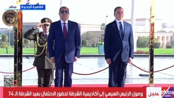 وصل قبل قليل الرئيس عبد الفتاح السيسي، منذ قليل، لأكاديمية الشرطة لحضور الاحتفال بعيد الشرطة الـ 74.