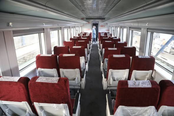 – قطار رقم 921 القاهرة / الإسكندرية بعربات أسبانى مطور بالتركيب ( 4 درجة أولى + عربة بوفيه + 6 درجة ثانية )