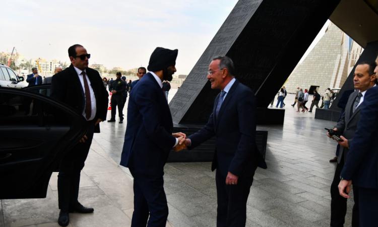 وكان في استقبال الضيفين والوفد المرافق الدكتور أحمد غنيم، الرئيس التنفيذي لهيئة المتحف المصري الكبير، حيث اصطحبهم في جولة داخل المتحف للتعرف على أبرز معالمه ومقتنياته الأثرية.
