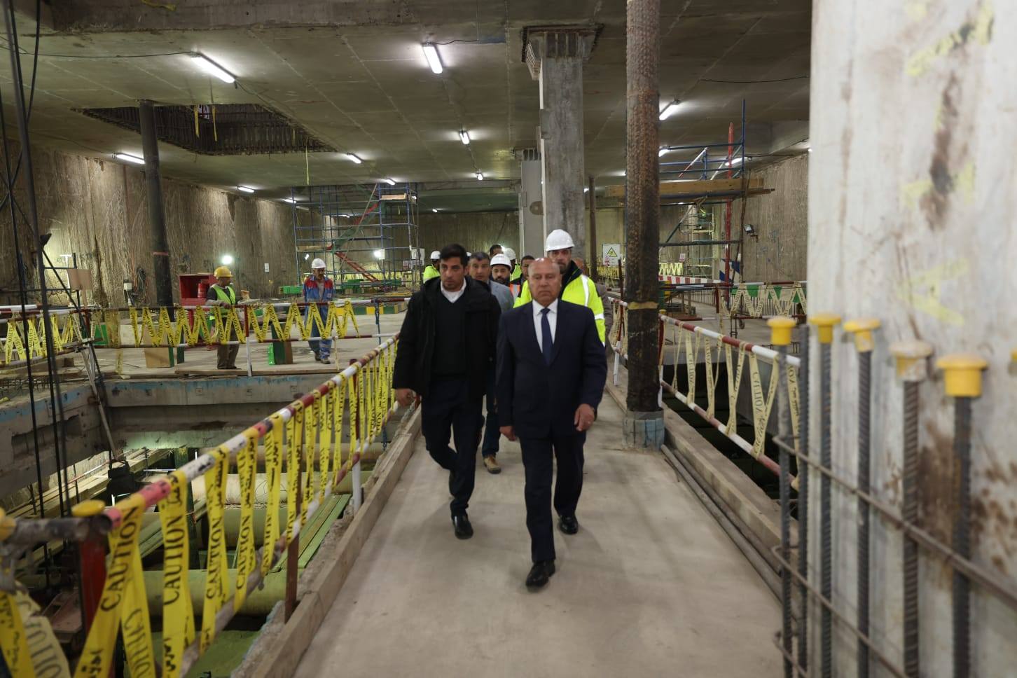 حيث تابع الوزير الموقف التنفيذي للمحطة، وتقدم المعدلات الإنشائية لباقي محطات المرحلة الأولى ، وكذلك تقدم معدلات تنفيذ أعمال الحفر النفقي للنفقين بالجزء الأول من المرحلة الاولى (نفق لكل إتجاه) بواسطة 4 ماكينات حفر نفقي (2 ماكينة لكل إتجاه ) ، حيث وصلت الماكينة الأولى الى محطة المتحف المصرى الكبير ، والثانية الى محطة الرماية والثالثة فى الطريق الى محطة مدكور ، والرابعة فى الطريق الى محطة الطالبية ، وكذلك الأعمال الجارية بشأن تجميع ماكينتي حفر الانفاق بالجزء الثاني من المرحلة الأولى من الخط حيث جارى انزال اول الماكينات بمحطة الفسطاط، علي أن تبدأ اعمال حفر النفق الأول من منتصف شهر مارس الحالي في إتجاه محطة الملك الصالح ، وعلى أن تبدا ماكينة الحفر الثانية عملها في حفر النفق الثاني في منتصف شهر ابريل القادم من نفس محطة الفسطاط في اتجاه محطة الملك الصالح .