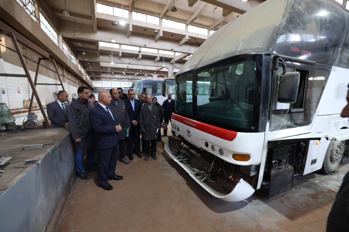 كما شاهد الوزير خلال جولته مراحل الصيانة وبرامج رفع الكفاءة التي يتم تنفيذها والمعدات المتاحة وحجم الاعمال المنفذه حيث تم تنفيذ  عدد من أعمال الصيانة ورفع الكفاءة لعدد من الأتوبيسات التابعة لشركات النقل، من خلال برامج فحص فني وإصلاح شاملة للأعطال الميكانيكية والكهربائية بما ساهم بفاعليه  في رفع جاهزية الأسطول التشغيلي وتقليل الأعطال المفاجئة ، وفي ضوء الاهتمام برفع كفاءة العنصر البشري تم استعراض ما يتم تنفيذه من  برامج تدريبية متخصصة للمهندسين والفنيين  بهدف تطوير مهارات الكوادر البشرية ورفع كفاءة العنصر البشري باعتباره الركيزة الأساسية لنجاح منظومة العمل الفني.
